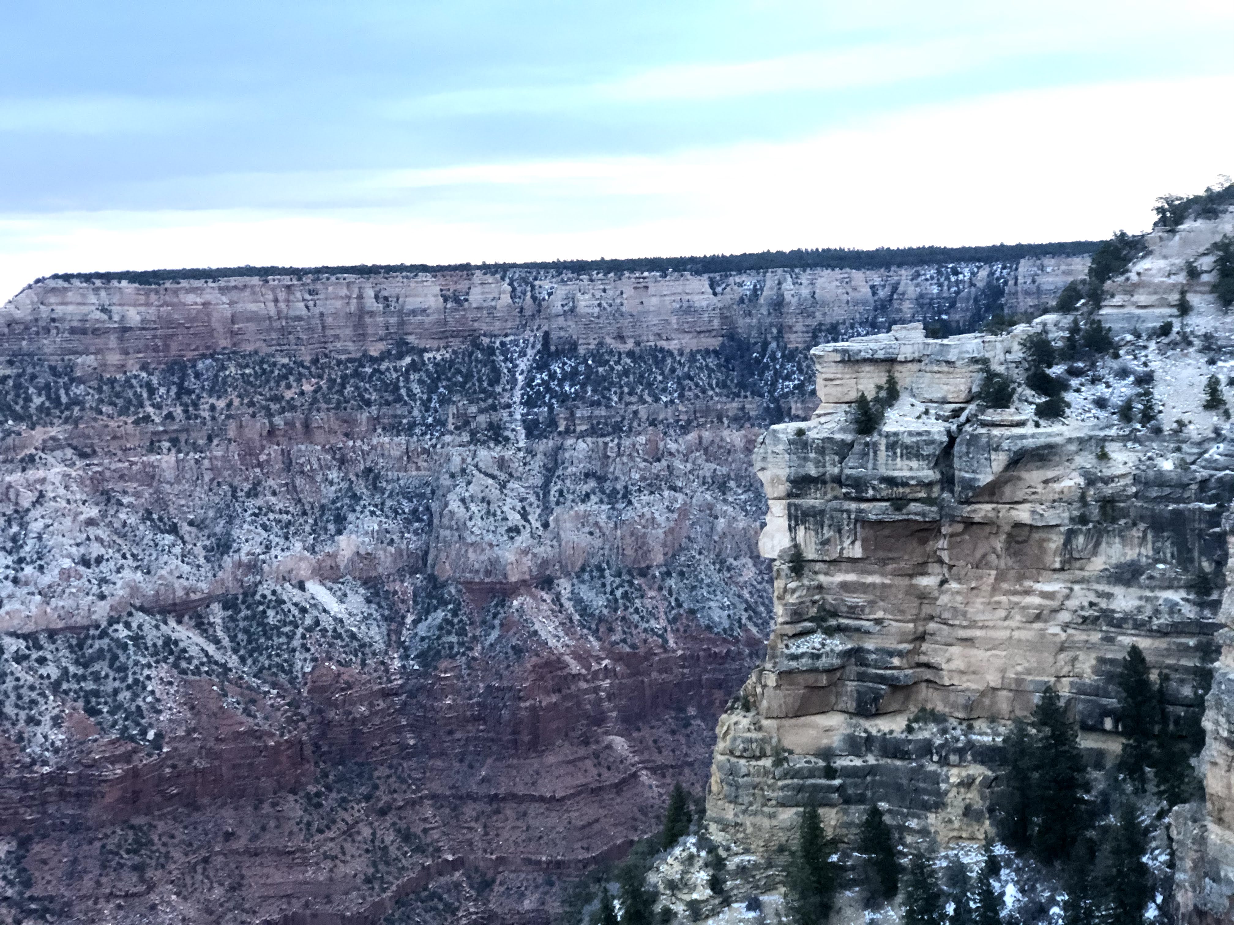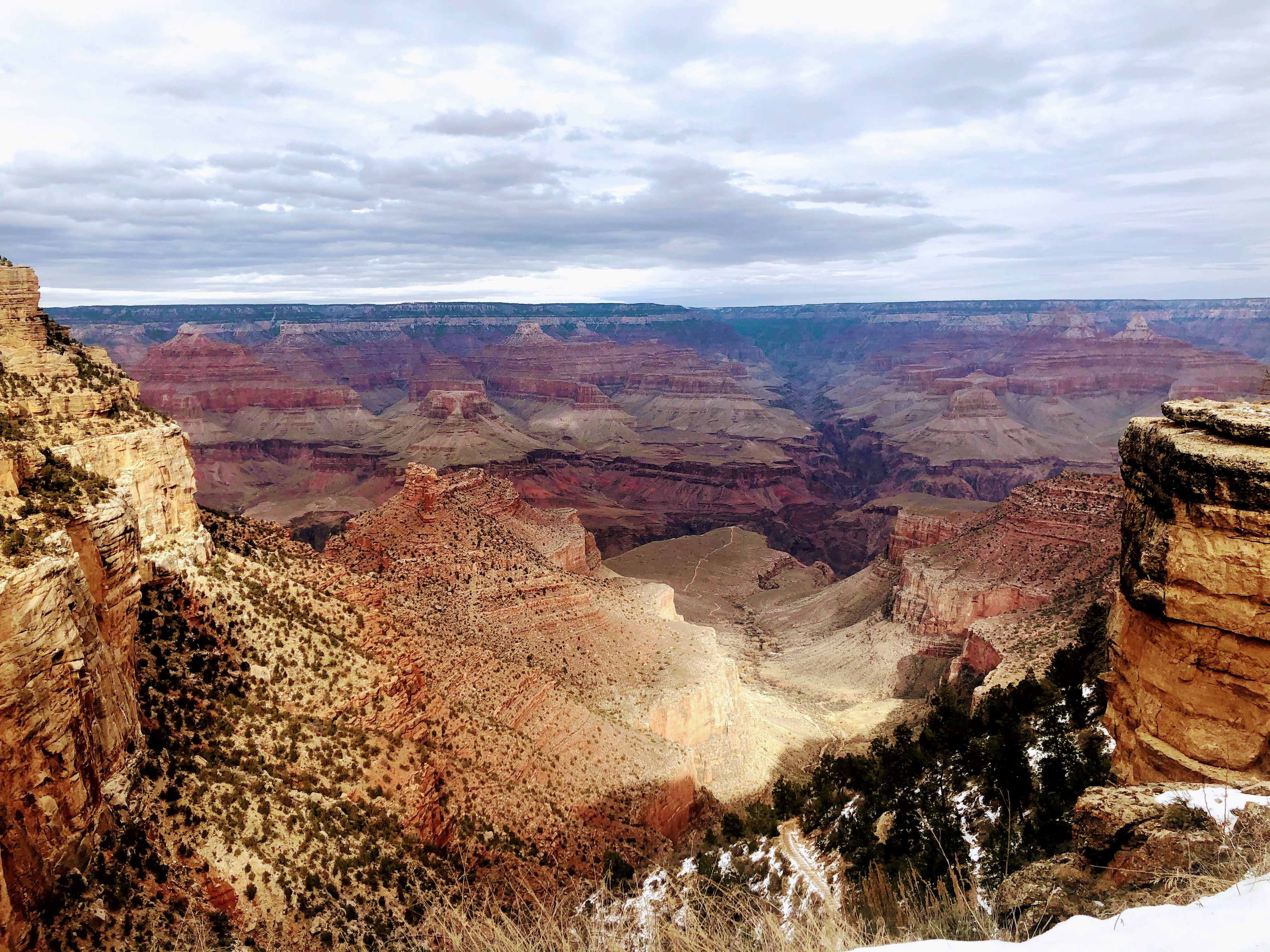 冬天去大峽谷是什麼感受?白雪皚皚的峽谷會帶來什麼驚險? 我們從拉斯維加斯出發,往大峽谷南緣前行。原本考量體力只想到西緣一遊,西緣離拉斯維加斯近,車程約為兩小時十五分鐘,到南緣要四個小時多。計劃趕不上變化,結果到了南緣,展開驚喜的探險。